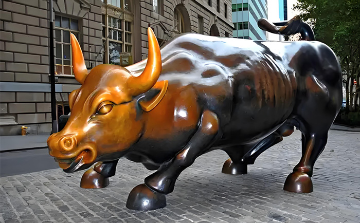 紐約曼哈頓的華爾街銅牛,無疑是全球最具影響力的銅牛雕塑之一。這尊由意大利裔藝術家阿爾圖羅?迪?莫迪卡創(chuàng)作于 1989 年的作品,重達 3.2 噸,以肌肉虬結的軀體、昂首前沖的姿態(tài),成為 “牛市” 的象征。其誕生背景頗具傳奇色彩:在 1987 年美股崩盤后,藝術家自掏腰包 36 萬美元鑄造銅牛,連夜安放在紐約證券交易所前的圣誕樹下,寓意 “經(jīng)濟復蘇”。盡管初期因 “非法放置” 引發(fā)爭議,但民眾對它的熱愛最終讓其落戶于百老匯大街,成為紐約的城市名片。2009 年,中國國旗首次在銅牛旁升起,見證了中美關系的深化;而 2019 年的搬遷計劃,則引發(fā)了全球?qū)ζ湮幕瘍r值的再思考。這尊銅牛不僅是金融市場的晴雨表,更傳遞著逆境中昂揚向上的信念。